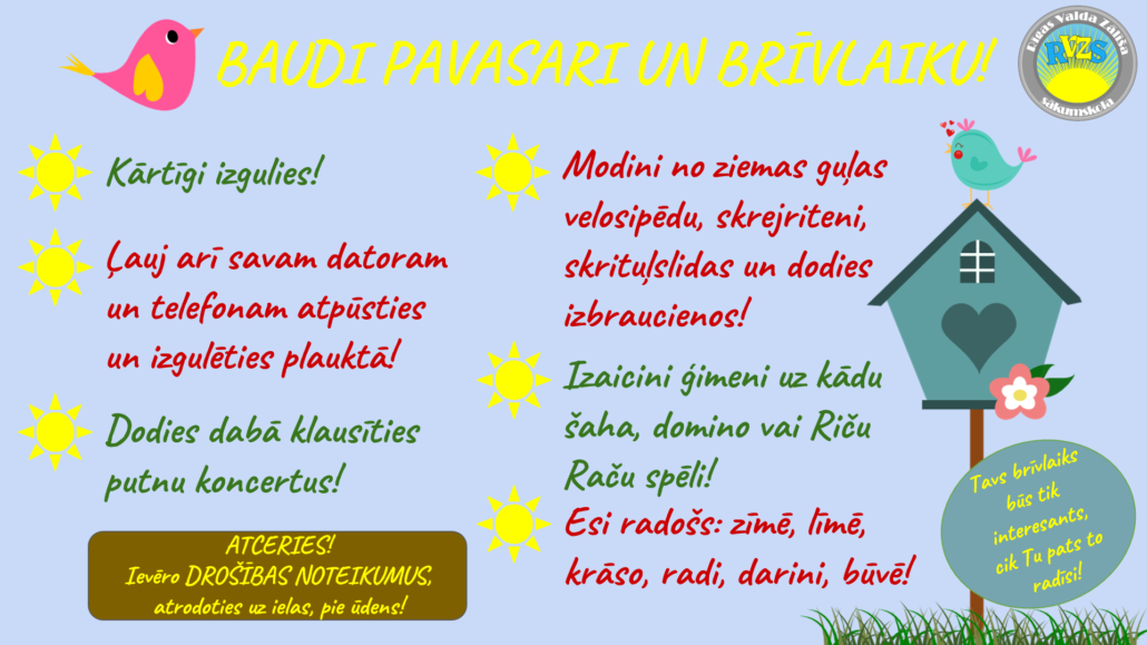 Pavasara brīvlaiks Jaunumi 14/03/2021/by zalisaskola1 https://zalisaskola.lv/wp-content/uploads/2021/03/Pavasara-brīvlaiks.png 1080 1920 zalisaskola1 https://zalisaskola.lv/wp-content/uploads/2020/10/logo4.png zalisaskola12021-03-14 14:15:392021-03-14 14:34:49Pavasara brīvlaiks