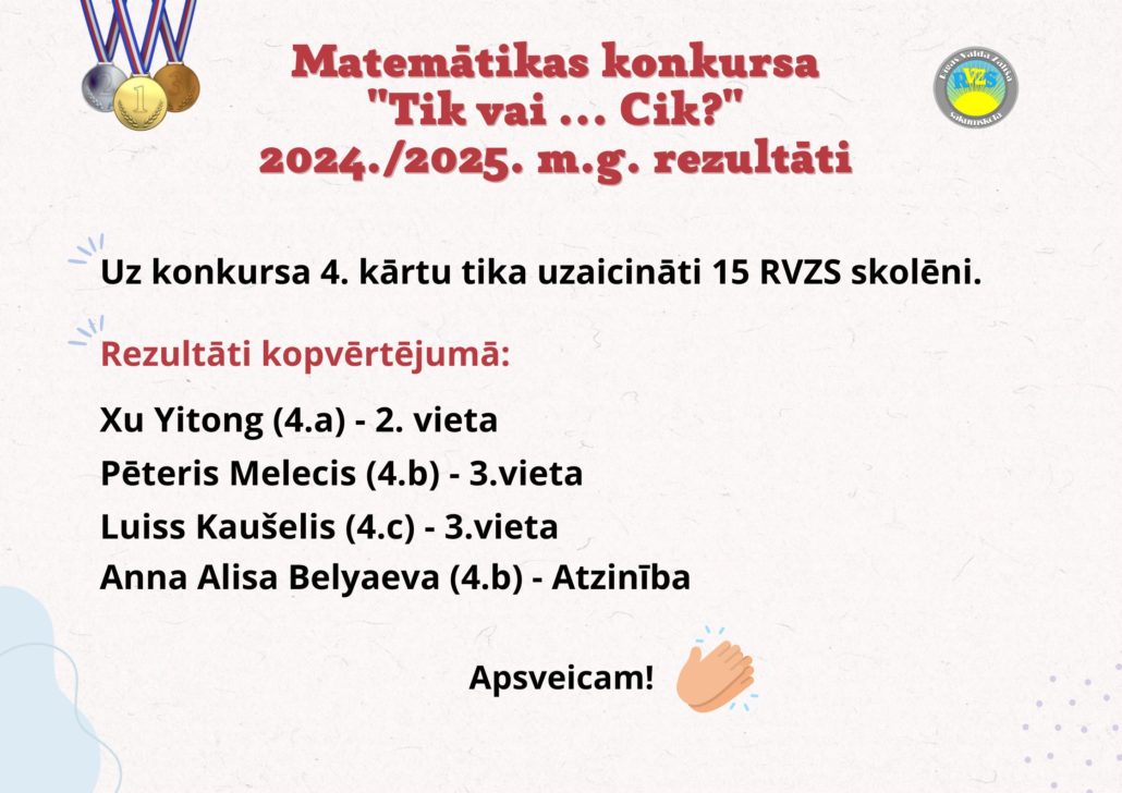Matemātikas konkursa “Tik vai… Cik?” rezultāti Jaunumi 18/05/2025/by zalisaskola1 https://zalisaskola.lv/wp-content/uploads/2025/05/TVC-rezultāti.jpg 1587 2245 zalisaskola1 https://zalisaskola.lv/wp-content/uploads/2020/10/logo4.png zalisaskola12025-05-18 14:56:472025-05-18 14:56:47Matemātikas konkursa "Tik vai... Cik?" rezultāti