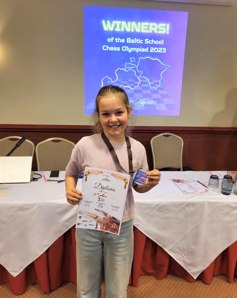 - 3.vieta meiteņu konkurencē bērnu B turnīrā “Olaines šaha pavasaris 2023”;