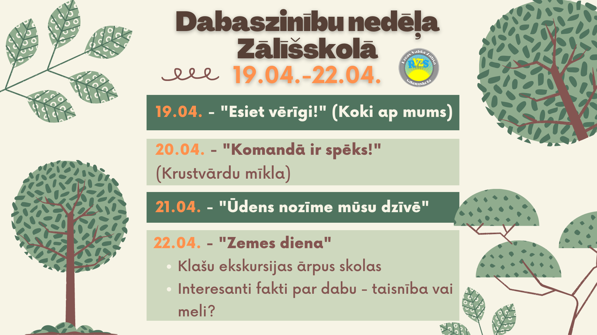 - 8. aprīlī būsim gatavi pavasarīgajai nedēļas nogalei un ģērbsimies pavasara krāsās.