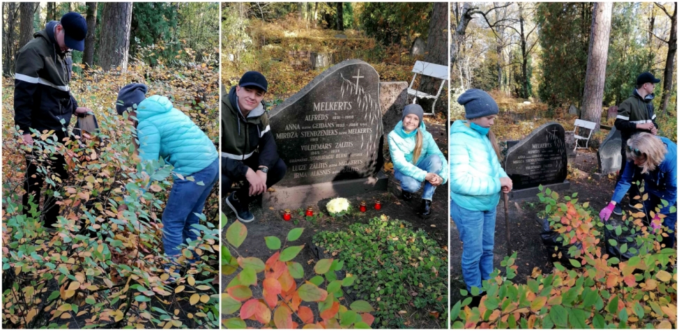 Godinot Voldemāra Zālīša piemiņu, mūsu skolēnu padomes pārstāvji kopā ar skolotājām – Ilzi Opmani un Leontīnu Ķēdi – tradicionāli devās sakopt rakstnieka atdusas vietu Meža kapos.