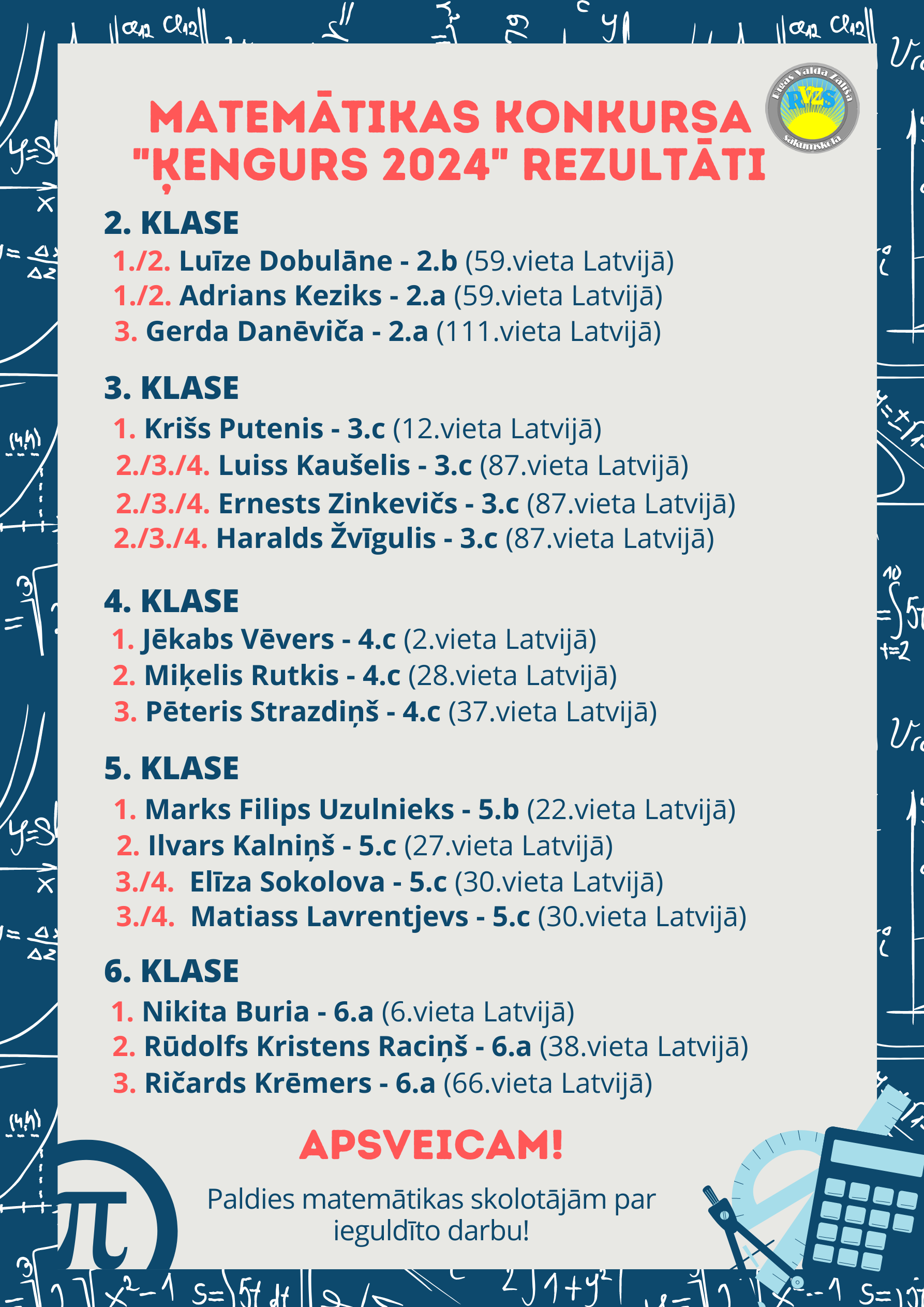 - 4.klašu grupā 1.vietu ieguva talantīgā 4.a klases skolniece Lizete Kovaļevska, kas ar iespaidīgu horeogrāfiju attēloja dziedātājas Sia mūzikas videoklipu.