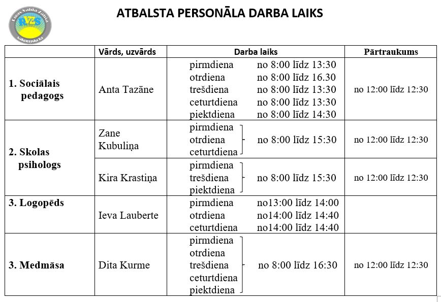 | Māra Zālīte | skolas dežurants | 67474384 |