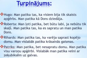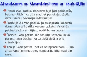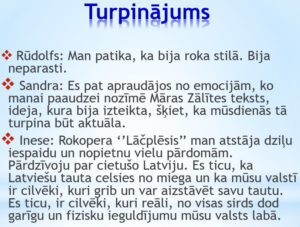 Nodarbība skolēniem aizraujošā, vienkāršā un saprotamā veidā sniedza ieskatu Barikāžu laika notikumos, kā arī lika aizdomāties un novērtēt to, ka šobrīd esam brīva valsts, pateicoties drosmīgajiem cilvēkiem, kas par to cīnījās gan pirms 30 gadiem, gan tālā pagātnē.